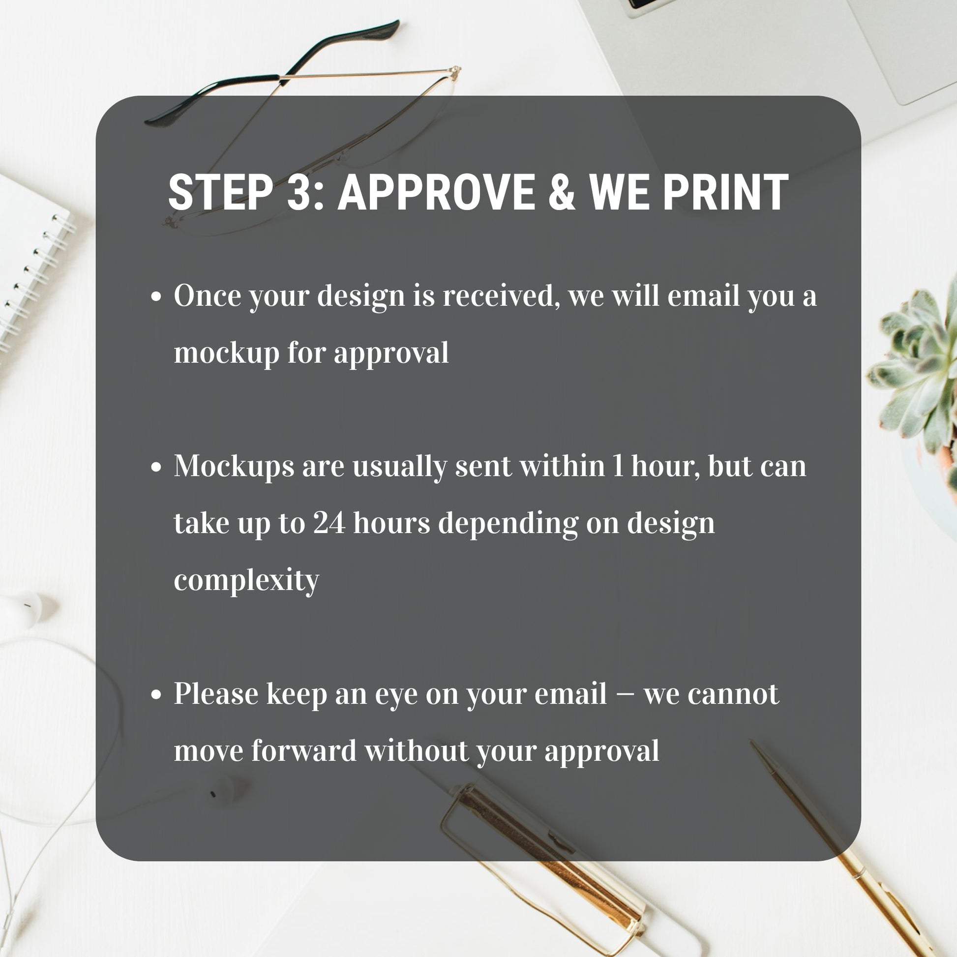 ✨ Personalization Instructions Please email your design or text details to shirtinacup@gmail.com along with your order number after checkout. Once received, I’ll create a mockup for your approval before printing begins. Your order will not be printed until you confirm the final design.