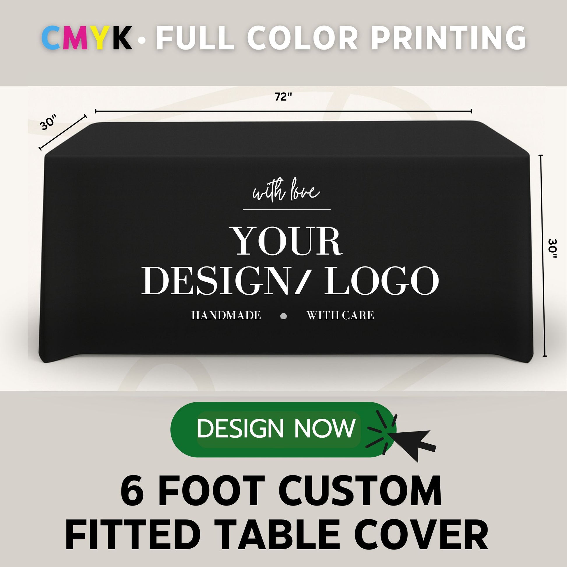 Custom 6ft Fitted Tablecloth with Logo: Waterproof Polyester Event Table Cover