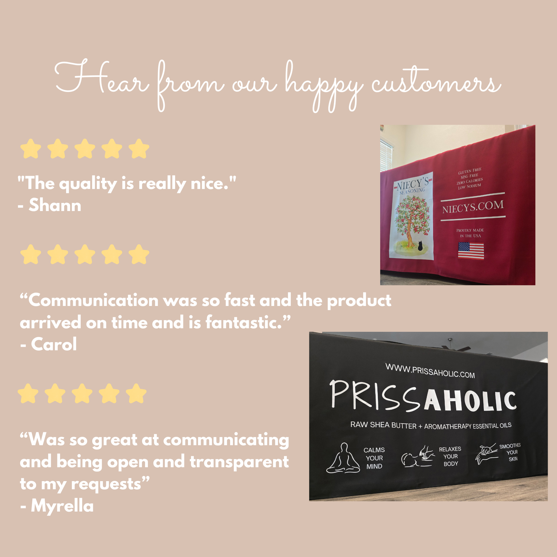 Transform your event setup with our custom 6-foot fitted table covers — the perfect way to showcase your brand at vendor fairs, tradeshows, craft shows, or any professional display. Made from durable 200 GSM waterproof polyester, these covers are both water- and stain-resistant, keeping your table looking clean and polished throughout your event.