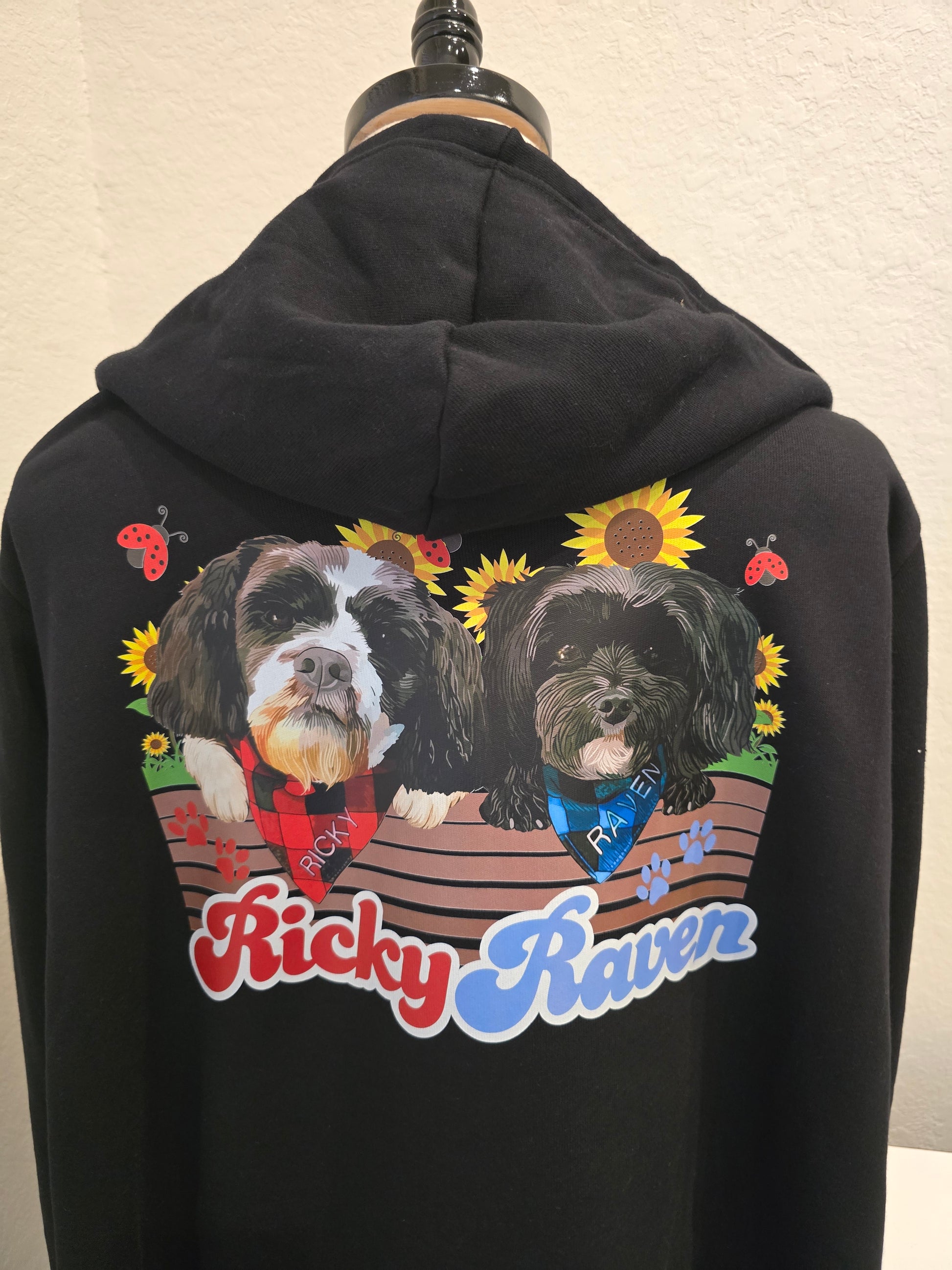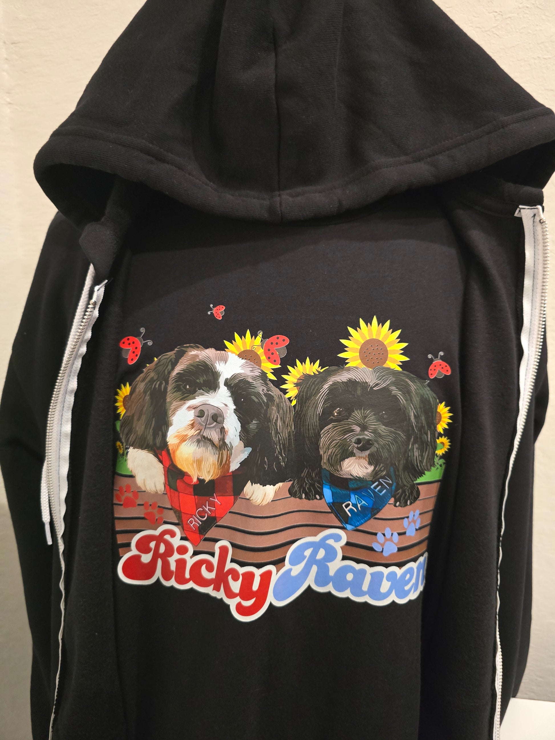 Turn your fur baby into wearable art with a fully customized hoodie featuring a hand-drawn portrait made just for you. No filters, no AI — every design is carefully illustrated by hand to capture the true personality of your pet. This hoodie is printed on a super soft, premium-quality fleece full-zip sweatshirt that’s cozy, durable, and perfect for everyday wear. You can choose to include one, two, or even three pets in the same design, and you’ll receive a final proof to approve before we print. It’s a thoughtful gift for birthdays, memorials, or just to celebrate your best furry friend. After placing your order, send your pet photo and order number to shirtinacup@gmail.com. Additional pets come with a small added fee. Pricing adjusts automatically based on your selections.