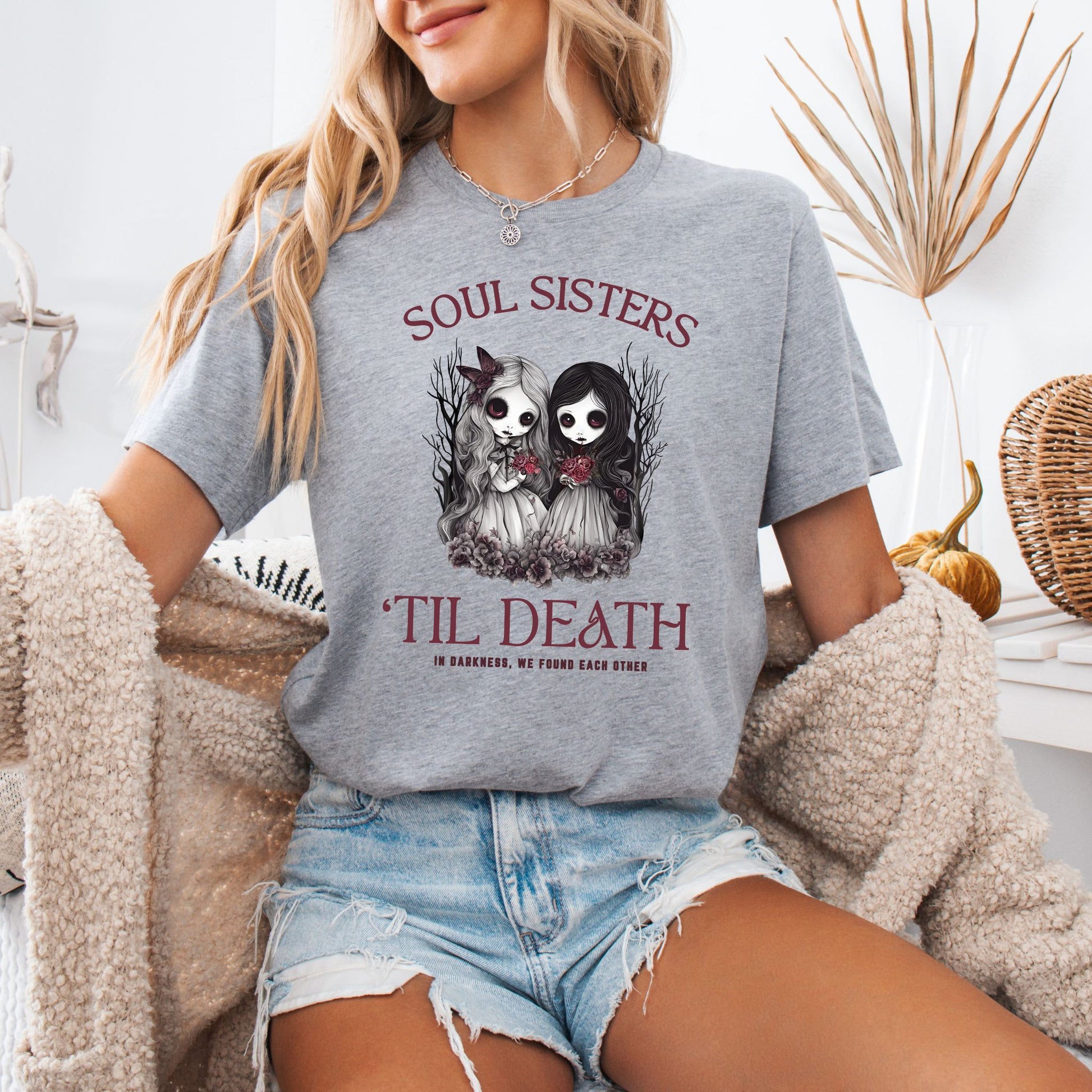 Soul Sisters Til Death Shirt – Gothic Best Friend Halloween Tee – Hand Drawn Art